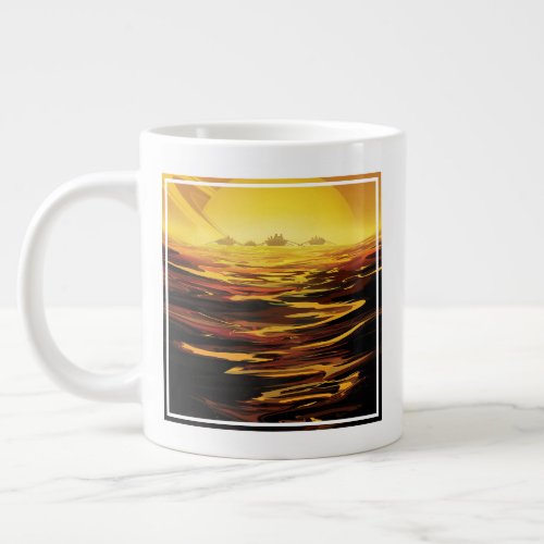 Retro Space Poster-Saturn's Largest Moon, Titan. Giant Coffee Mug
